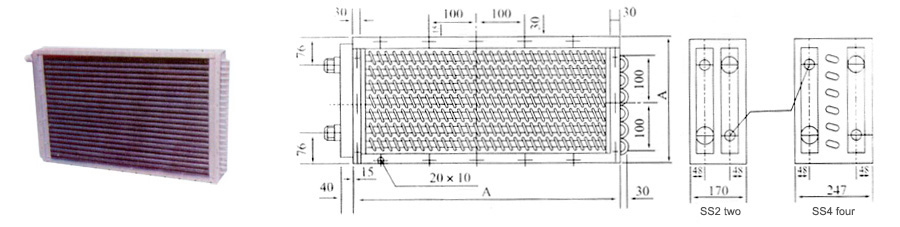 GL II type is steel double circuit (two rows) or multi circuit (four rows) air heat exchanger. The finned tube is made of 10 × 0.3 mm steel strip wound by 18 × 2 mm seamless steel pipe. It is in the shape of screw. It can be made up of various surface tubes and long rows of tubes. The inlet and outlet pipes are on the same side. The working medium heat source is steam or high temperature water, and the cold source is low temperature water or salt water. It can be used as air heater or air cooler. It is an economical and durable general radiator.