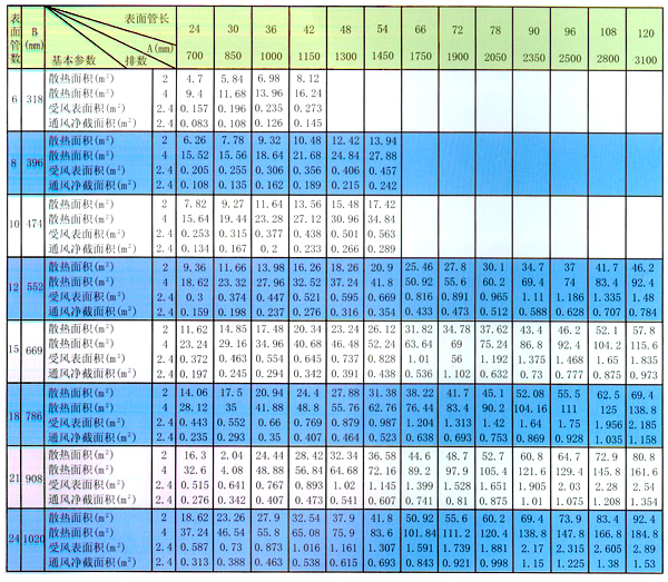 型號—排數—表面管數—表面管長(cháng)(英寸)如采用四排,表面管數為10,管長(cháng)為42英寸時(shí),則為GL II—4—10—42